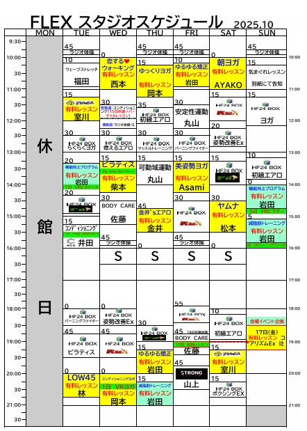 ●参加のためのお手続きは必要です。上記スケジュールの各プログラム(有料レッスン除く)レッスン開始45分前から3階ジムカウンターにておこないます。定員は30名でレッスン開始15分前に一旦、受付を締め切らせていただきます。この時点で30名以上予約入ってる場合は抽選。30名以下なら残り枠を先着とさせていただきます。