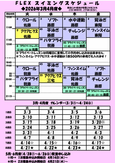 ●レッスン参加者はフロントにてお申込み下さい。